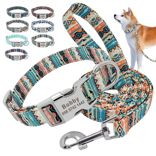 Reflective Dog Collar & Leash Set with Custom Engraved ID Tag