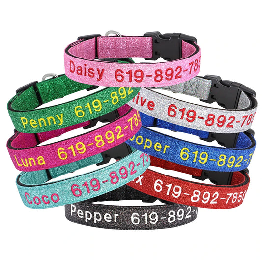 Personalized Reflective Dog Collar - Custom Embroidered Name & Phone