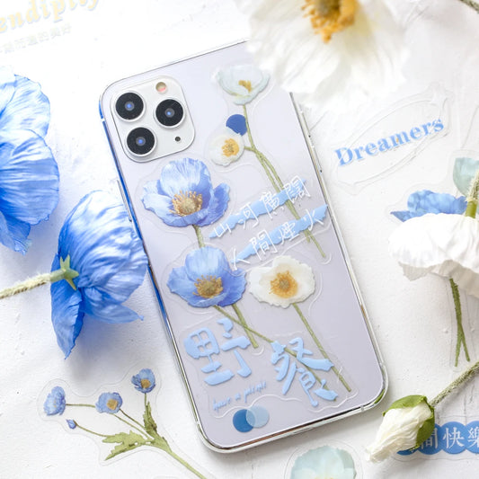 Floral Stickers 40 Pcs - Transparent PET Scrapbook Journal Craft Supplies