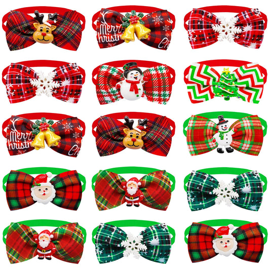 Christmas Dog Bowties Set - 30 Festive Plaid Bow Ties for Dogs